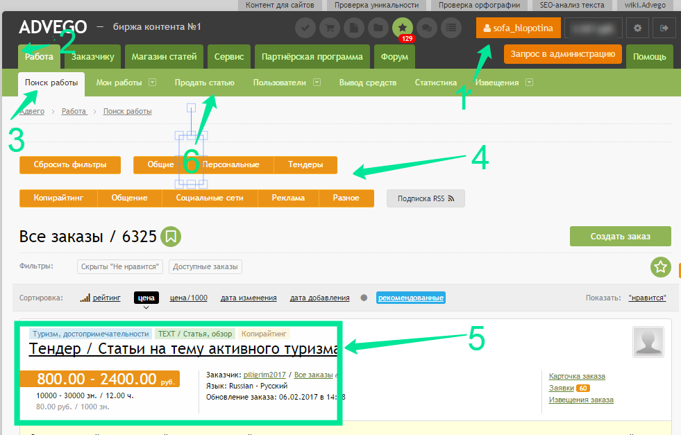 3. Обрати фільтри для бажаного виду роботи (№4), взяти замовлення в роботу (№5).